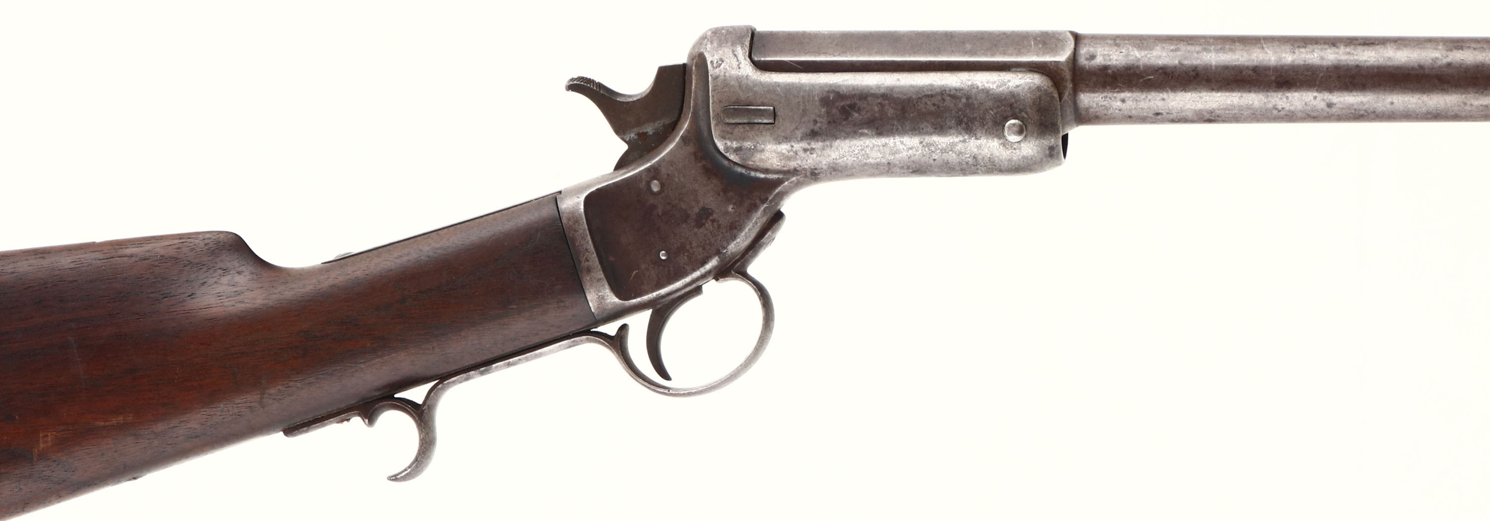 J. Stevens, ''Tip-Up'' Model, CAL: 14GA, MFG: 1864-86, SN: 3626, Breech Loading Single Shot Shotgun, 30 1/2'' barrel. The straight grip wood stock is very good, displaying scratches, scrapes & added protective oils. The metal finish has toned to a mix of metal gray & brown patina, with remnants of blue remaining in protected areas. Bore is fair & dark, with consistent spotting & pitting. The barrel holds a front bead. Buttstock carries a smooth metal buttplate. Antique, No FFL Req. - Value: 200 to 400