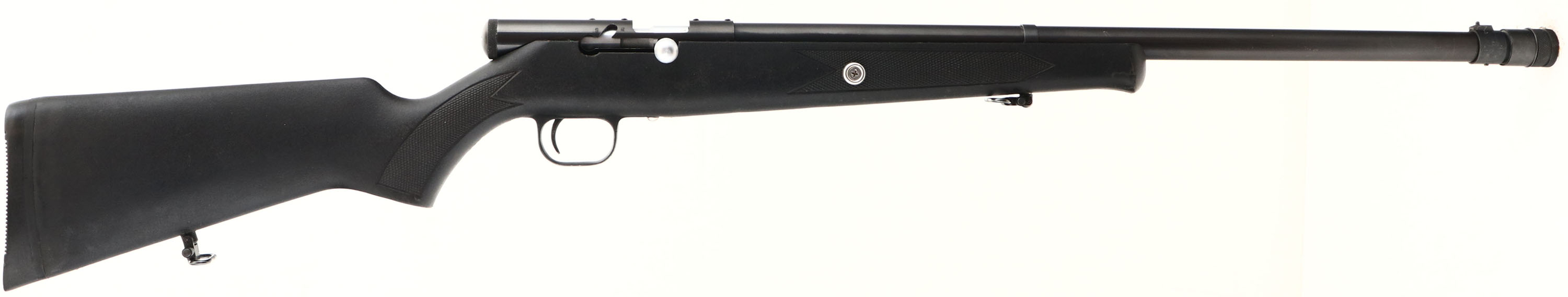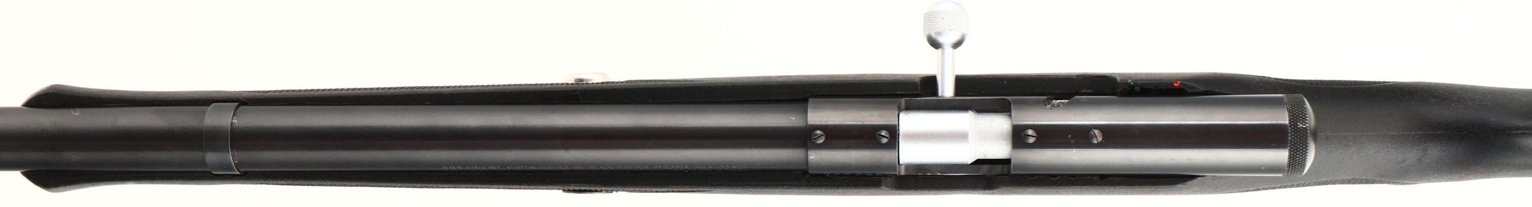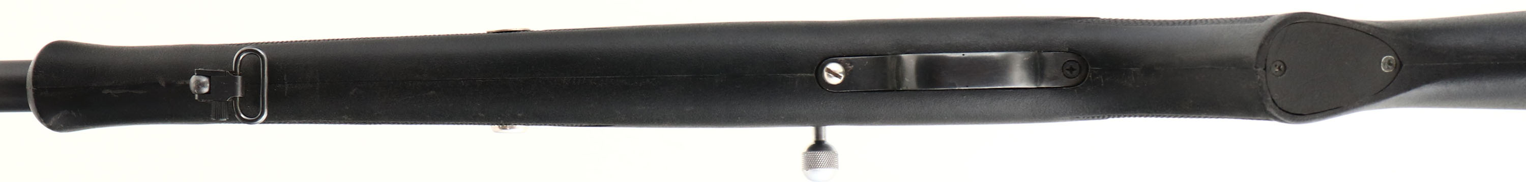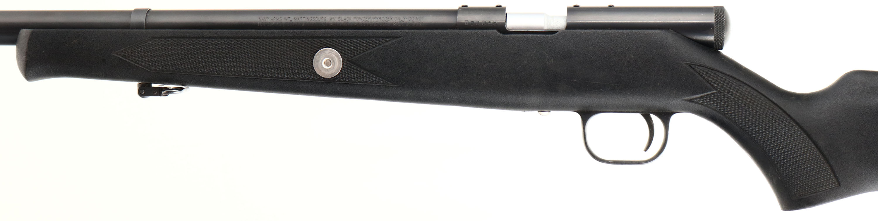 Navy Arms, Muzzleloader Shotgun, CAL: N/A, MFG: Modern, SN: D00065, Black Powder Percussion Shotgun, 25'' barrel. The checkered flat pistol grip synthetic stock is excellent, displaying minor handling marks. The metal blue finish rates 99% overall. Bore is excellent, displaying light striations from use. The barrel holds a single front bead & carries an adjustable choke system. Stock carries a grooved hard rubber recoil pad. Sling loops present. Black Powder, No FFL Req. - Value: 100 to 300