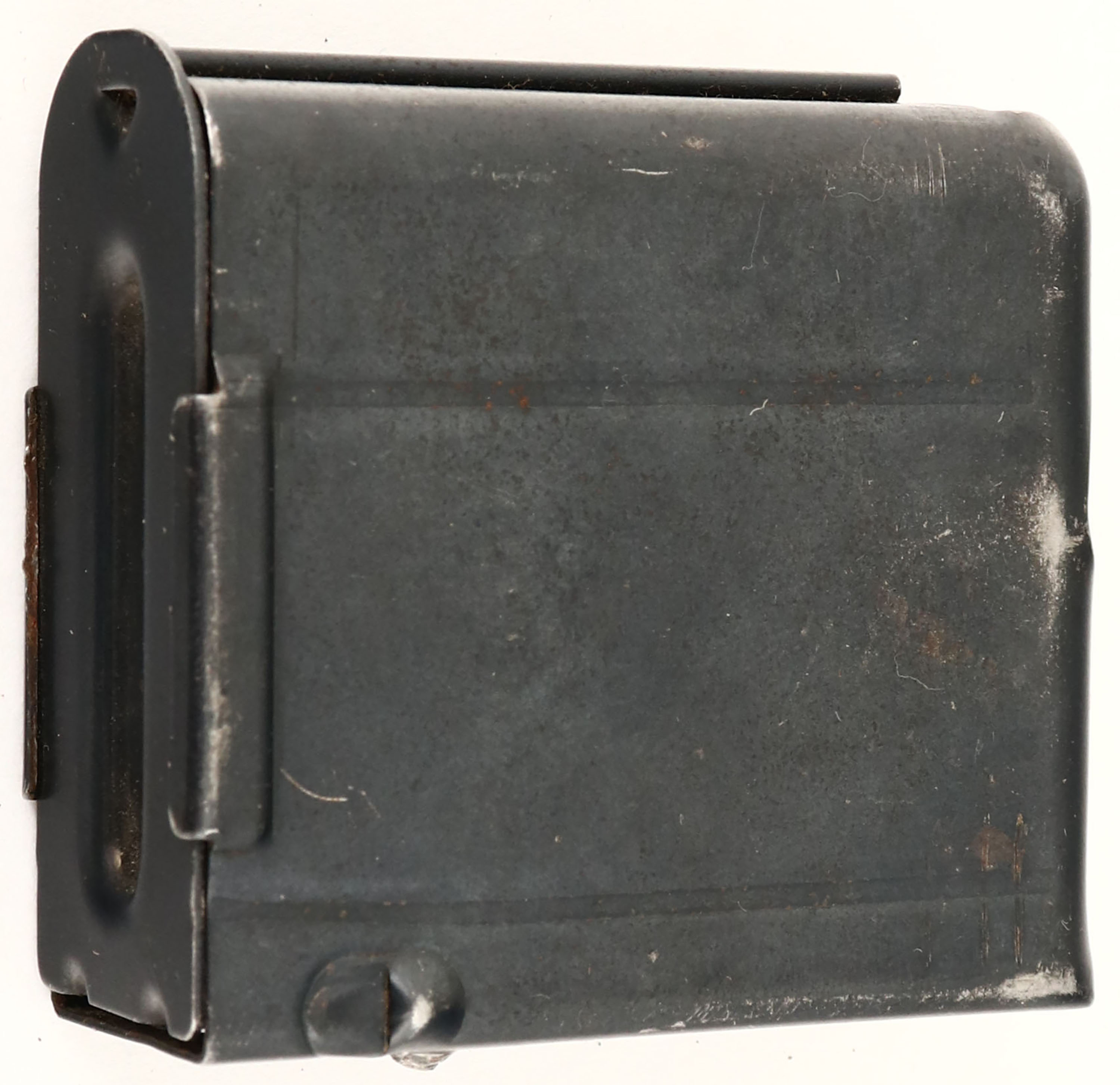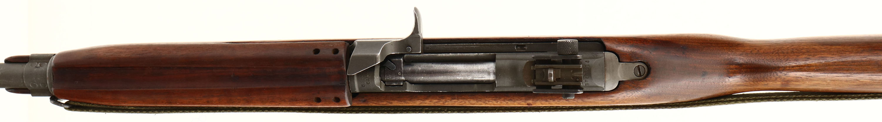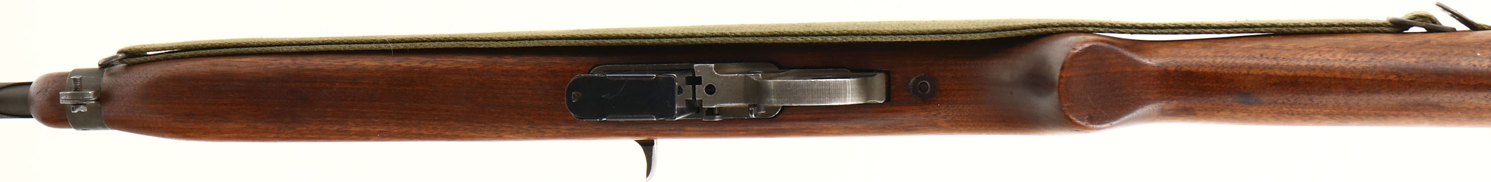 I.B.M, M1 Carbine, CAL: .30 Carbine, MFG: 1943-44, S/N: 3743814, Semi-Auto Rifle, 18'' Round Barrel. The flat pistol grip wood stock is excellent, as nicely refinished, displaying small handling marks, contusions & light scratches. Faint cartouche on right side of stock that is no longer legible. The military parkerized finish on the receiver & barrel rates 90%, displaying light scratches & scrapes. The back of the receiver is marked, ''I.B.M. CORP, SN'' & the top of receiver on the front is marked, ''U.S.CARBINE'', ''CAL. 30M1''. The bottom of trigger guard marked, ''O''. The barrel band is marked, ''O'' in diamond & the top end of barrel marked, ''I.B.M CORP.'', ''11 43'' over ''Flaming Bomb''. Bore is very good, bright & shiny amongst thinned rifling. The barrel holds a blade front sight, with protective wings & the rear sight is a windage/elevation adjustable aperture sight, with graduations from 1 to 3. The buttstock carries a checkered military style buttplate. Comes with sling, oiler bottle, 15 Rd. mag marked ''UU'' & an additional 5 Rd. mag. FFL or C&R Req. - Value: 800 to 1600