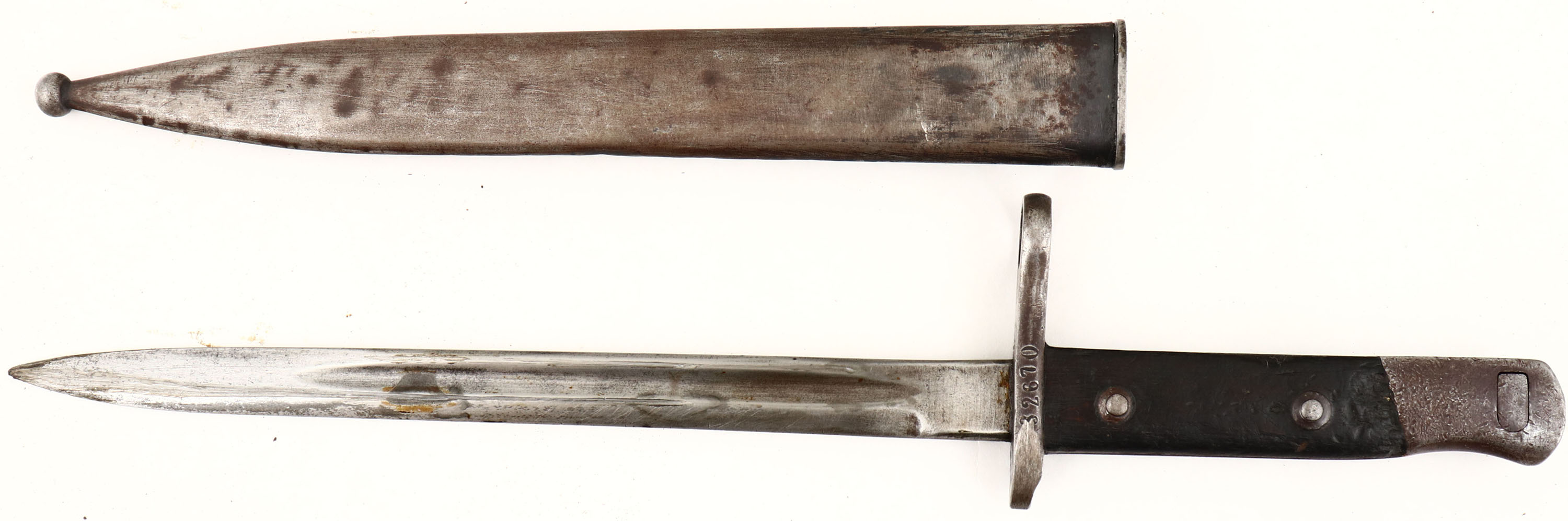 Asfa Ankara. Model: M38. Cal: 7.92x57mm. MFG: 1941. S/N: 42508. Bolt Action Rifle. 28 3/4'' Barrel. The semi pistol grip stock is very good with scratches, gouges, oil darkening & wear from use/age. Bolt disassembly disc in stock. The metal finish rates 60% overall with spots worn to a gun metal gray & spots of brown patina. Left side of receiver is marked with S/N, ''T C'', ''AS FA'', ''ANK ARA'', ''K.KALE, ''1941'', Crescent Moon/ Stars, end of barrel is stamped with importer. Bore is very good with light roughness. Barleycorn front sight, V-notch Tangent rear sight marked 1 to 20. Metal buttplate with wear & brown patina. Bottom sling swivels, has cleaning rod, comes with bayonet & sheath. FFL Or C&R Req. - Value: 200 to 400