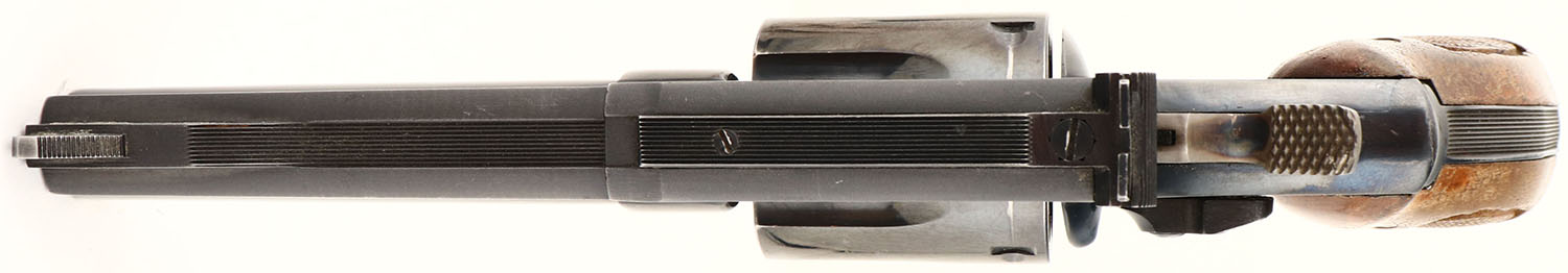 Smith & Wesson, Model 19-5, CAL: 357 MAG, MFG: 1985, SN: 145K838, Double Action Revolver, 2 1/2'' barrel. The factory brass medallions & checkered wood grips are very good, but with finish wear from use & handling. The original blue finish is 92%, with most loss due to muzzle wear. Case-colored hammer & trigger. Bore is excellent. Adjustable square notch rear sight & ramp blade front sight. Overall, a very nice condition. FFL Req. - Value: 400 to 800