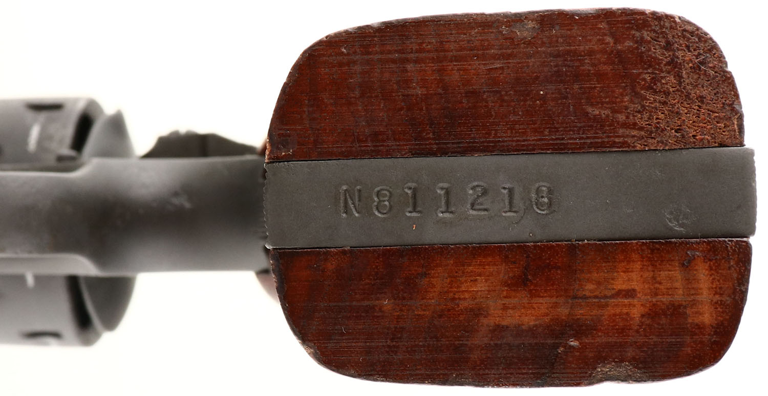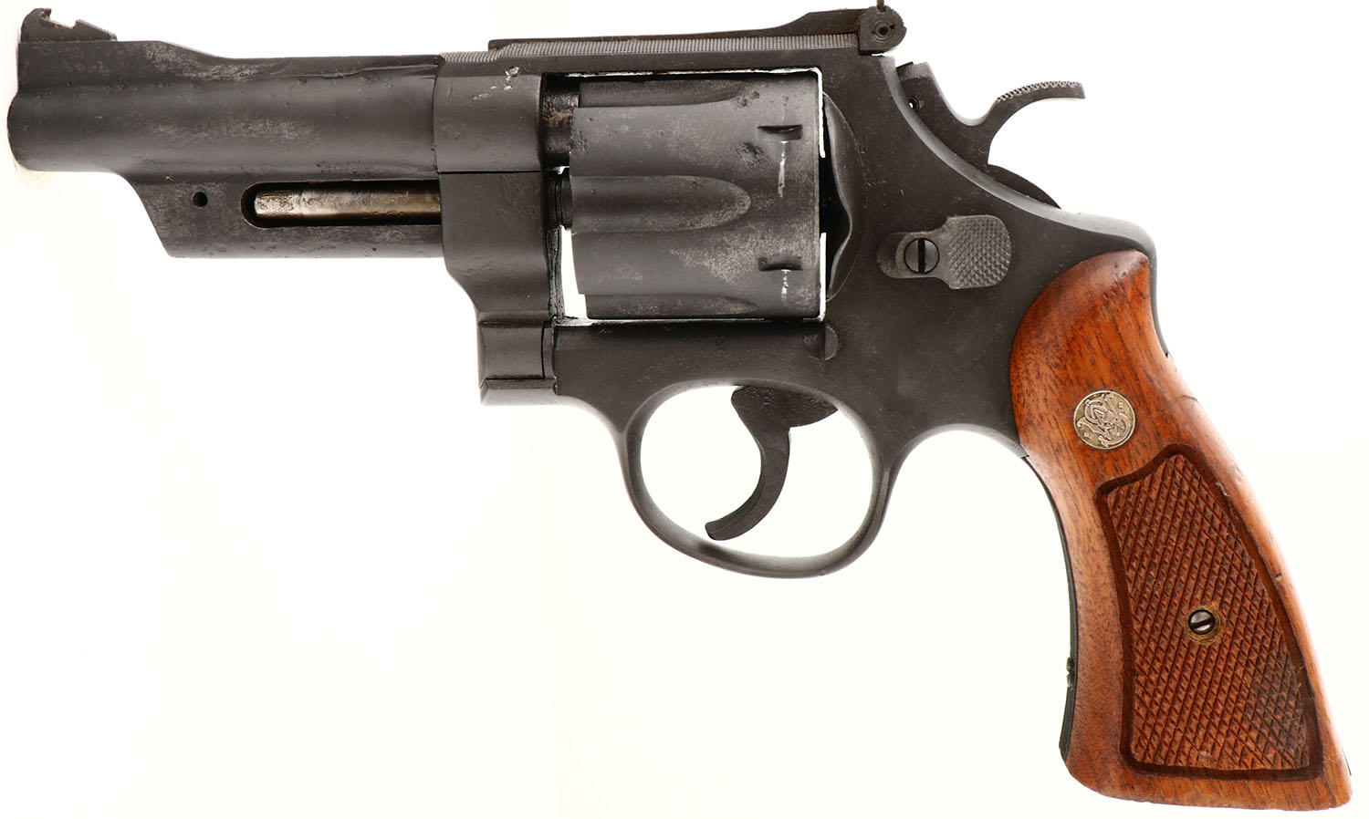 Smith & Wesson, Model 27-2, S&W .357 MAG. Cal., Double Action Revolver, Mfg. 1964, SN: N811218, 4'' barrel. The original medallion, square butt, & checkered grips are excellent, Metal carries heavy, cleaned pitting, with an aftermarket matte finish over the top. Adjustable rear sight & ramp front sight is missing the red insert. Bore is very good. Action & timing function properly. A good utilitarian pistol. FFL or C&R Req. - Value: 200 to 400