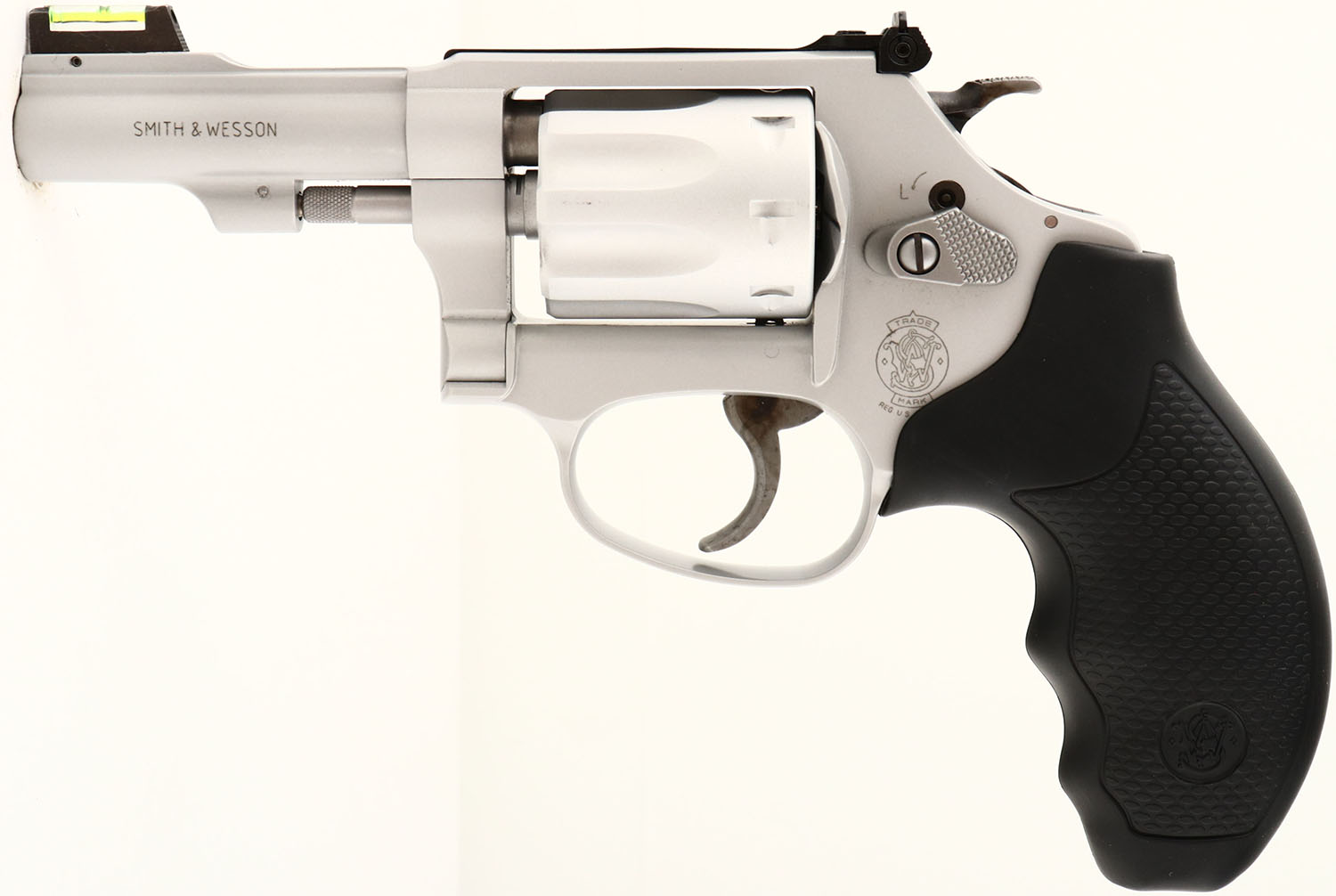 BOXED, Smith & Wesson, Model 317-3 Air-Lite, CAL: 22 LR, MFG: 2002, SN: DRD5021, Double Action Revolver, 3'' barrel. The S&W logo on left side of frame, factory marked rubber grips are excellent. The aluminum alloy satin finish rates 98% overall, Trigger & hammer are case-colored, with slightly fading tones. Bore is excellent. Factory fiber optic front sight. A nice lightweight revolver. FFL Req. - Value: 500 to 1000