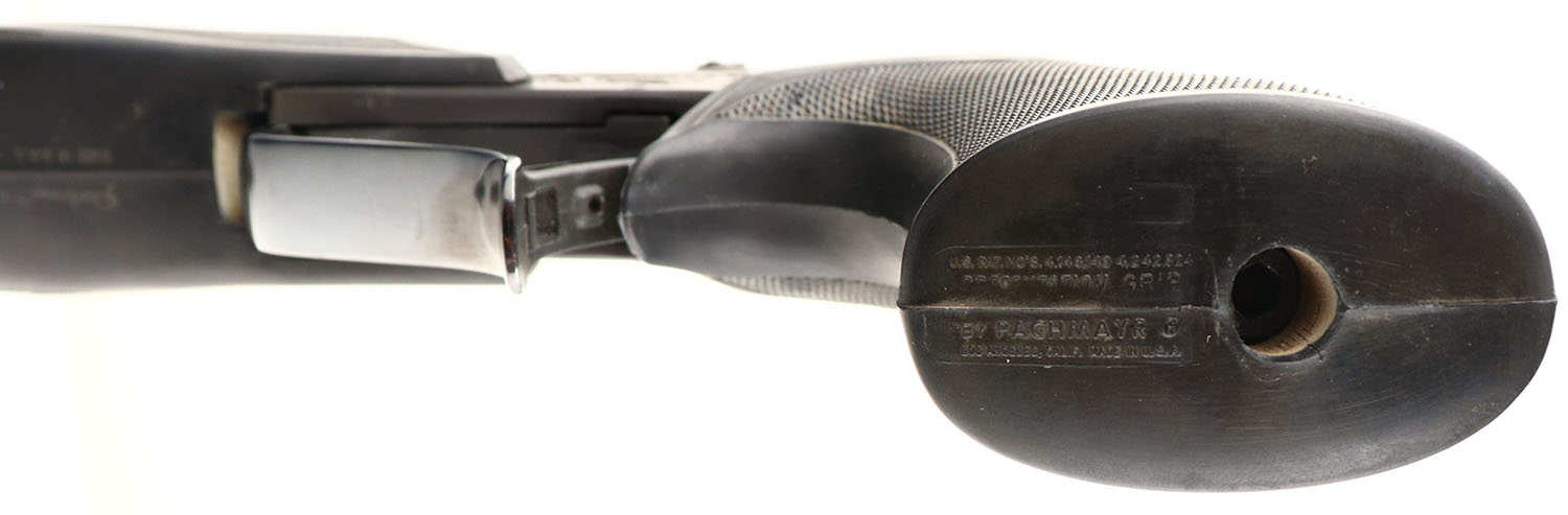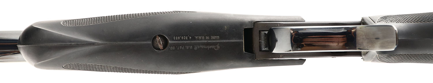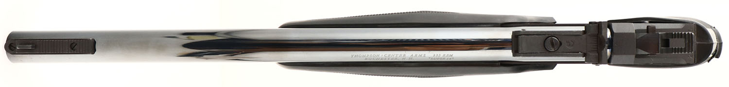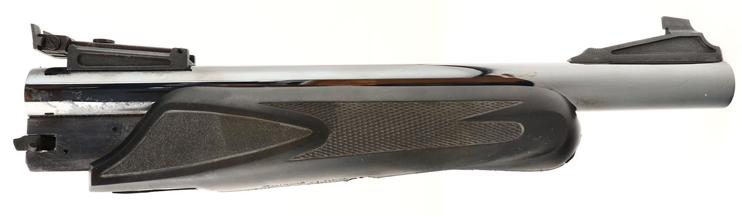 Thompson Center Arms, Model: Super 14 Contender, 2 barrel set .223 REM 14'' & 45 Colt 10'', Single shot, single action break barrel. Mfg. 1983. SN: 229486, 14 & 10'' barrels. The original checkered Pachmayr rubber grips are excellent, with some light wear. The original metal finish is 97% overall. Features an etched cougar perched on ledge on both sides of receiver. Has original sights. Bores are excellent. Easily interchangable barrels. Great target pistol. FFL Req. - Value: 600 to 1200