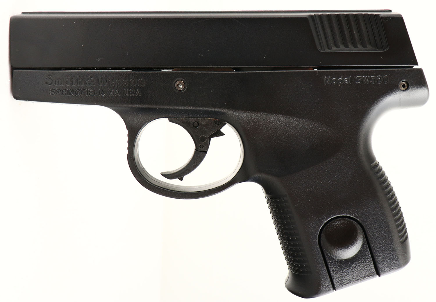 CASED, Smith & Wesson, Model SW380, CAL: 380 Auto, MFG: Modern, SN: RAJ7614, Semi Auto Pistol, 3'' barrel. The textured grips are excellent, displaying little to no use. The black finish on the frame, barrel & slide is excellent. Bore is excellent & bright. Factory sights, Comes in original hard case with extra 6rd. mag & lock. A nearly new pistol. FFL Req - Value: 600 to 1000