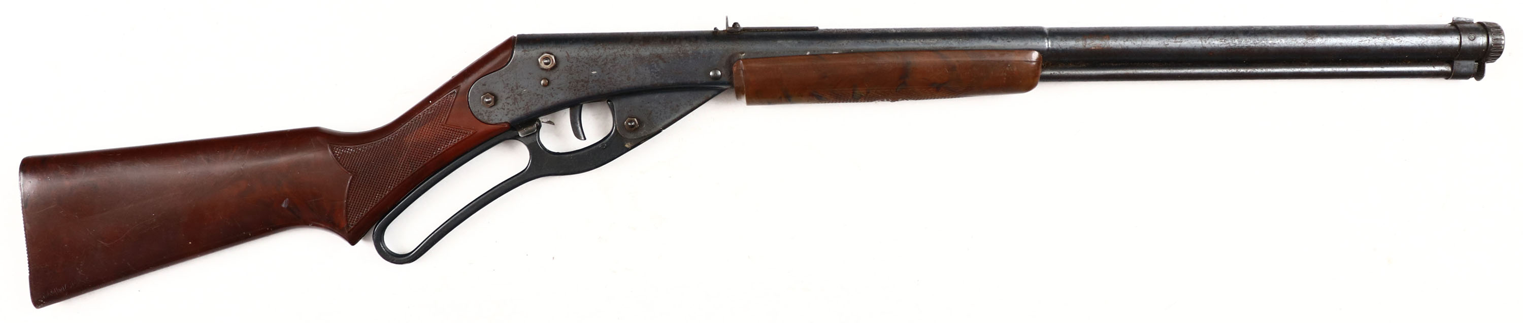 Daisy. Model: No.111 Model 40 Variant 7. Lever. Plastic stock & forend, sticker on left side of stock, metal finish rates 60% with rust & wear, appears to function correctly but pressure sounds weak. Grade: Very Good + - Value: 30 to 120