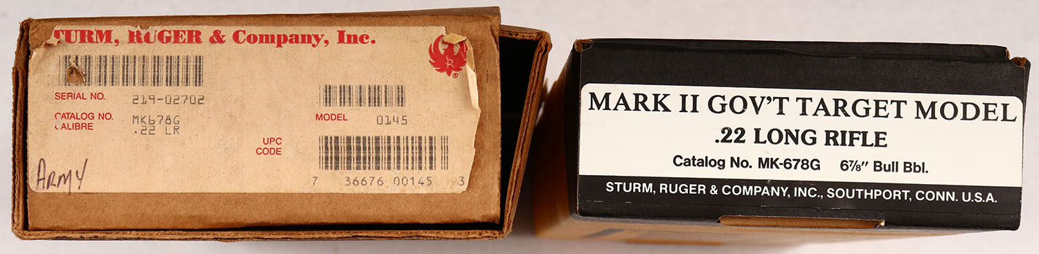 BOX ONLY: Ruger Mark II Gov't Target Model, Outer box cover with label & inner box. Boxes are excellent. - Value: 20 to 100