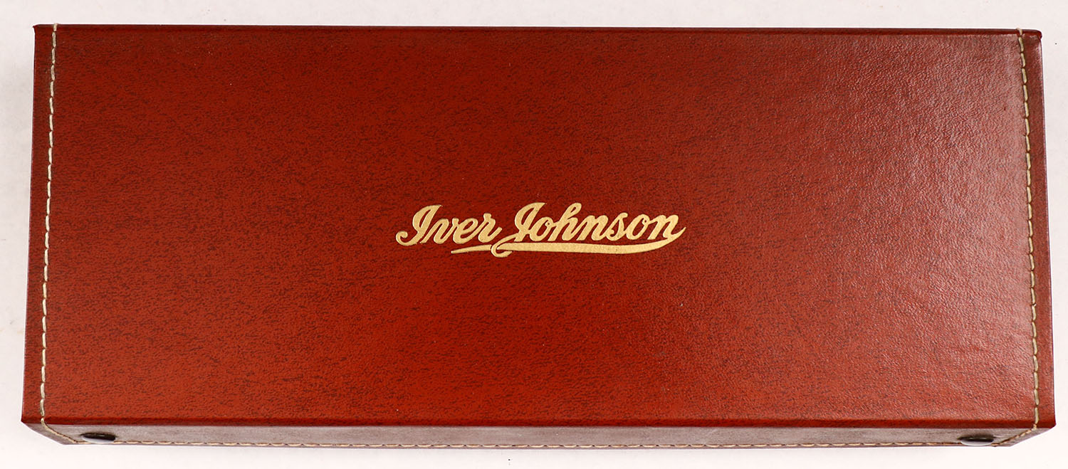 BOX ONLY for Iver Johnson Armsworth Model 855 Armsworth Revolver Original factory N.O.S. revolver snap close box, came from the remaining inventory when factory closed. Has label for Model 855 Armsworth .22 Cal. 6'' BBL,& comes with the original blue brochure for this model. Condition is excellent. - Value: 10 to 100