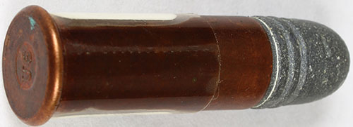 44 Ballard Extra Long (CL=1.12'') HS=''US'' raised in impressed circle, Copper Case, RN Lead w/ 3 grooves. Grade: Excellent - Value: 20 to 40