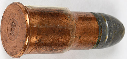 56-46 Spencer, HS=''US'' raised in a circle. Copper case, Slightly flat Lead bullet, See ''American Cartridge'' by Suydam Pg 122. Grade: Excellent - Value: 20 to 50