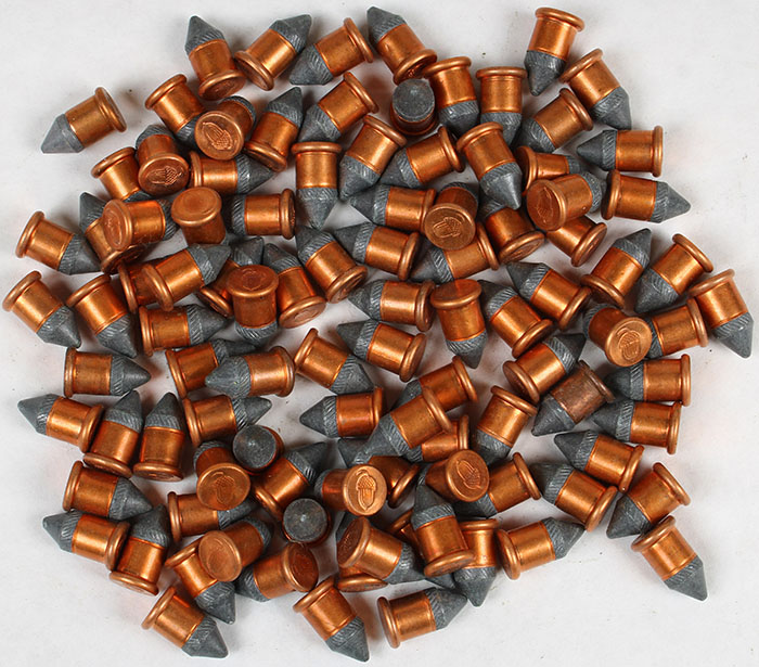 Lot of 100 6mm Flobert RF. HS: (Acorn)=RWS. Copper case w/ pointed lead bullet. Black powder loading. Grade: Excellent - Value: 10 to 60
