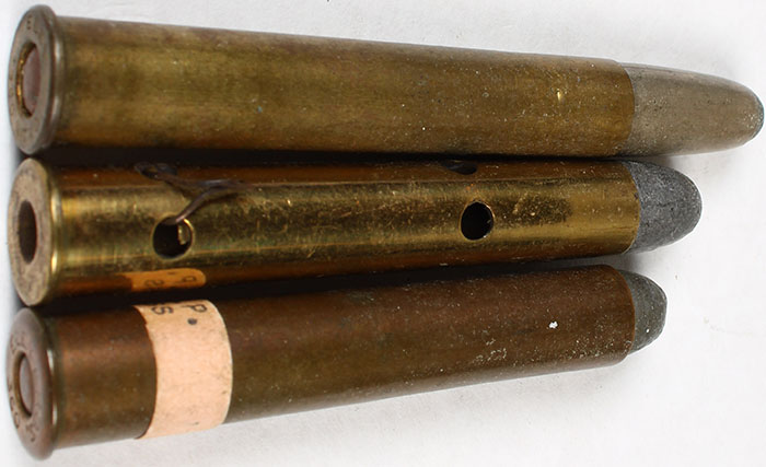 Lot of 3 N/H, early KYNOCH 360 2 1/4 C.L. B.D. 4-mounting holes, no PRL. R.N.L. H.P. H/S= ''ELEY 360 NITRO'' 2 1/4'' C.L. oval COP. PRL., S.P. C.N. R.N. H/S= ''ELEY BROS 360'' 2 1/4'' C.L. B.P. oval COP. PRL. R.N.L. H.P. Grade: Very Good + - Value: 20 to 40