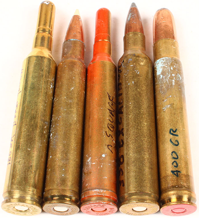 Lot of 5 H/S= ''A - square 416 HFMN'' proof load, red stained HD. FLT. NIC. PRL., S.P. G.M. R.N. H/S= '' A - square 358 STA'', FLT. NIC. PRL., S.P. G.M. white polymer tip. H/S= ''A - square 338 excalibur'' FLT. NIC. PRL., S.P. G.M. PTD. H/S= '' A - square 300 Pegasus'' FLT. NIC. PRL., F.P. BR. R.N. belted H/S= ''A- square 7MM STW'' proof load, red stain on HD. & BL'T. FLT. NIC. PRL. F.P. BR. R.N. belted. Grade: Excellent - Value: 20 to 60