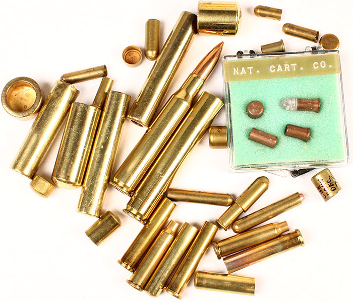 Lot of 6 different draw sets (8) H/S= ''DEN 43'' 30-06 8 pc. Draw set. (6) H/S= ''IMP. ''C'' 22 MAG draw set (4) H/S= IMP. ''C'' 22 L/R draw set (4) H/S= IMP. ''C'' 22 short draw set (4) H/S= IMP. ''W'' 22 short draw set NAT. cart. Co. (9) H/S= ''17 REM. HORNET R-P'' FLT. NIC. PRI. (Draw Set) Grade: Excellent - Value: 20 to 50