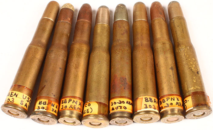 | Lot of 8. (3) HS=''U.S.C. Co. 30-30 REM'' one w/ copper pr...