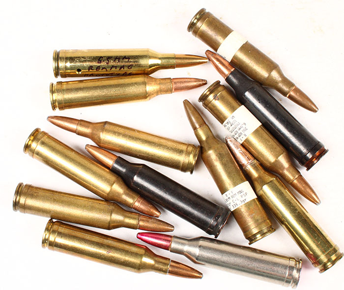 Lot of 13 (13) H/S= ''6.5 MM REM, MAG'' (350 CAL.) mix of variations, includes 350 H/S prototype, (4) Dummy RNDS. (1) TIN Ccase proof (2) function dummies Grade: Excellent - Value: 20 to 40