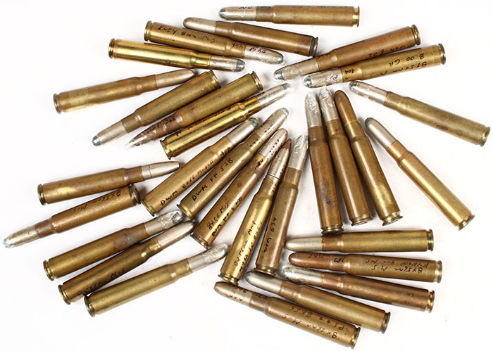 Lot of 30 diff. 8x56MM Mannlicher SCHO., mix of H/S MFG., PRL. & B'T. variations. Grade: Very Good + - Value: 20 to 50