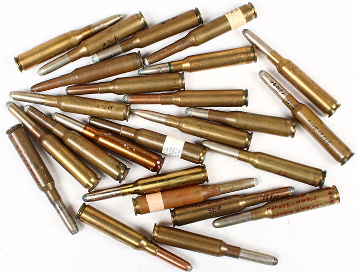Lot 25= 6.5x54MM Mannlicher Schoenauer all diff., variations, very early variations. Grade: Very Good - Value: 20 to 40