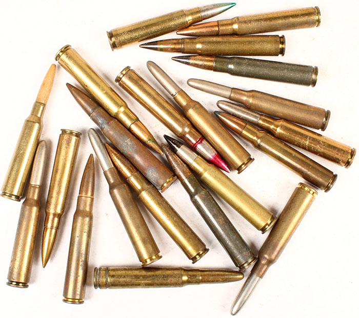 Military Mauser ammunition: Eleven 7.9mm, seven 6.5x55mm, three 7.65mm, Military loads including Grade: Very Good ++ - Value: 10 to 40