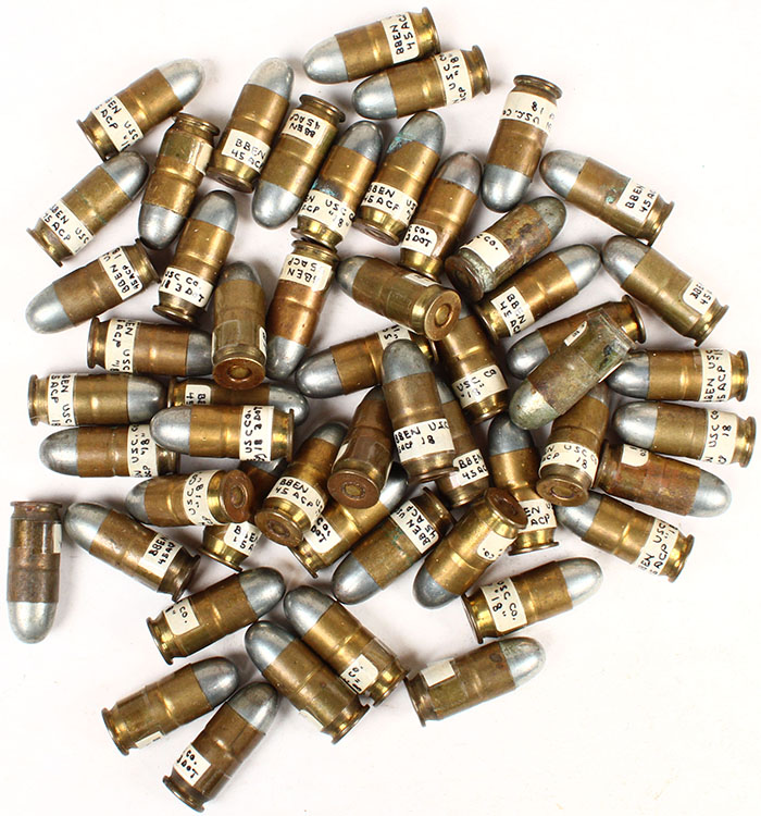 45 Auto--Lot of 53 by USC. World War I Military contract 1918. HS=''U.S.C.CO. 17''. CN RN. Case cannelure. Condition Very Good - Value: 60 to 100