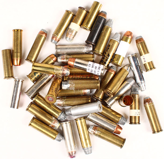 41 REM. MAG. Lot of 40 all diff. mix of H/S/MFG. PRL. CS. & load variations, includes armorer's function dummy, tin CS. Proof's N.P.E. ECT. Grade: Excellent - Value: 20 to 60