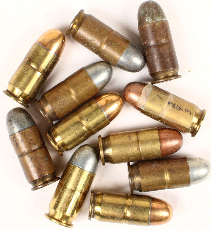 Lot of 10 (7.) U.S.C. CO. 45 A.C.P. dated: (1.) ''18'' oval BR. PRL., F.P. TIN R.N. (1.) ''18'' oval BR. PRL., F.P. G.M. R.N. (1.) 17'', oval BR. PRL., F.P. G.M. R.N. (1.) ''5M 17'', oval BR. PRL., F.P. TIN. R.N. (1.) ''7M 17'', oval BR. PRL., F.P. G.M. R.N. (1.) ''7-17'', oval BR. PRL., black CS., F.P. TIN. R.N. (1.) ''-17'', oval BR. PRL., F.P. TIN R.N. (3.) H/S= ''U.S.C.CO. 45 A.C.P. 3 variations. Grade: Excellent - Value: 20 to 40