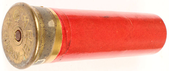 | H/S: ELEY KYNOCH No 4, loaded shotshell, red paper case 3 3/4 OA...