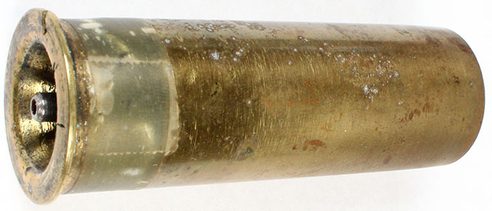 H/S none, 4 ga, 3 1/16'' OAL. empty brass shotshell. Grade: Very Good + - Value: 10 to 100
