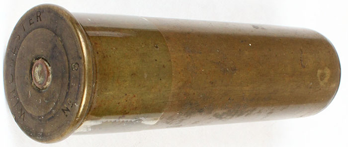 | H/S: Winchester No 8, 3 3/16'' OAL. brass shotshell. Grade: V...