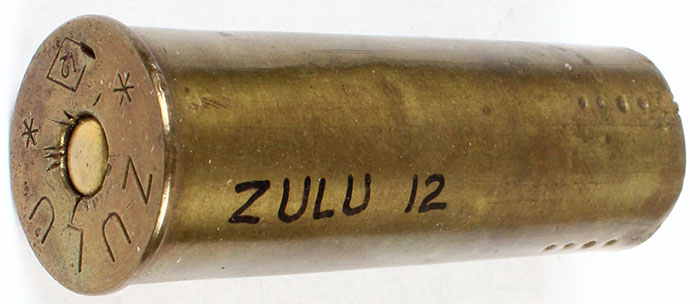 H/S: ZULU 12 ga, 2 7/16'' OAL. empty brass shotshell. Grade: Very Good + - Value: 6 to 30