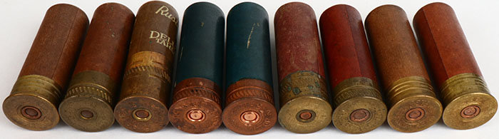 Lot of 9 loaded paper shotshells. Grade: Excellent - Value: 10 to 50