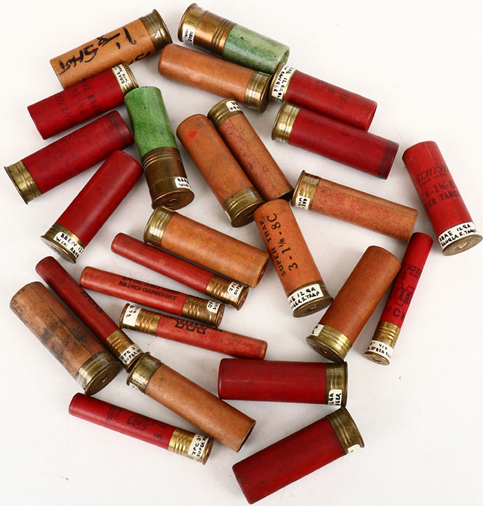 Large lot of Winchester Ranger 10ga, 12ga, 16ga, 20ga, Winchester Pigeon 10ga, WRA 41 superspeed empty and loaded shotshells. Grade: Excellent - Value: 10 to 100