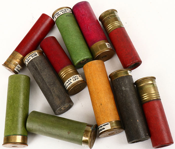 Lot of 11 loaded paper shotshells. Grade: Excellent - Value: 10 to 50