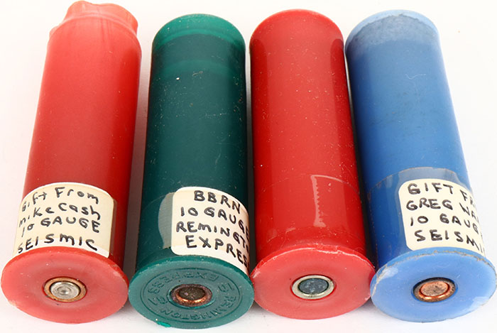 Lot of 4 plastic shotshells. Grade: Excellent - Value: 10 to 50
