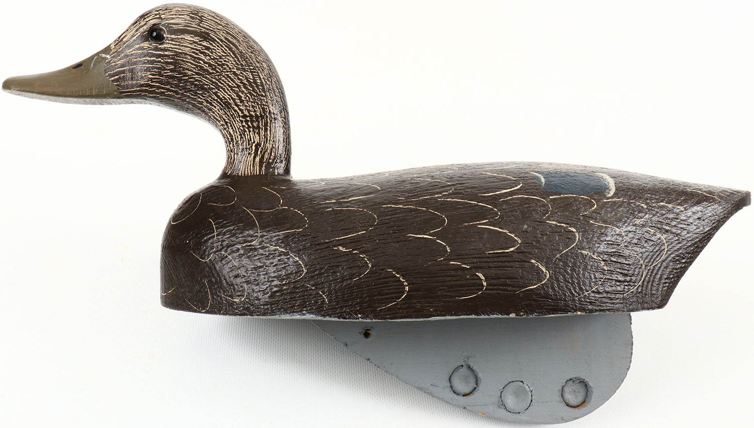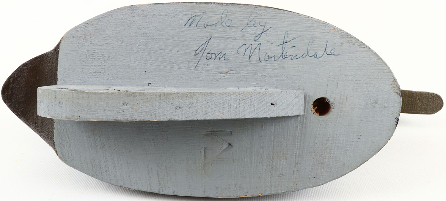 Black Duck by Tom Martindale, glass eyes, solid wood, original paint, has branded TM on bottom. Grade: Excellent + - Value: 40 to 150