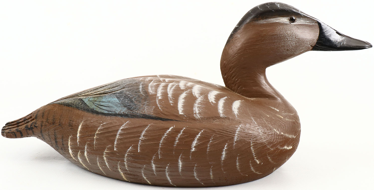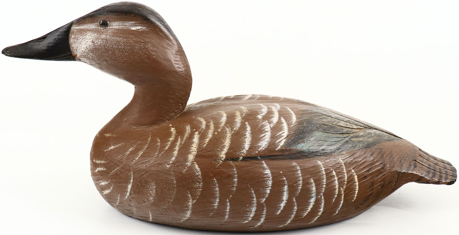 Canvasback Hen by Tom Martindale, Wolf Island Ont. Canada glass eyes, solid wood, structurally excellent, original paint. Grade: Excellent + - Value: 40 to 150