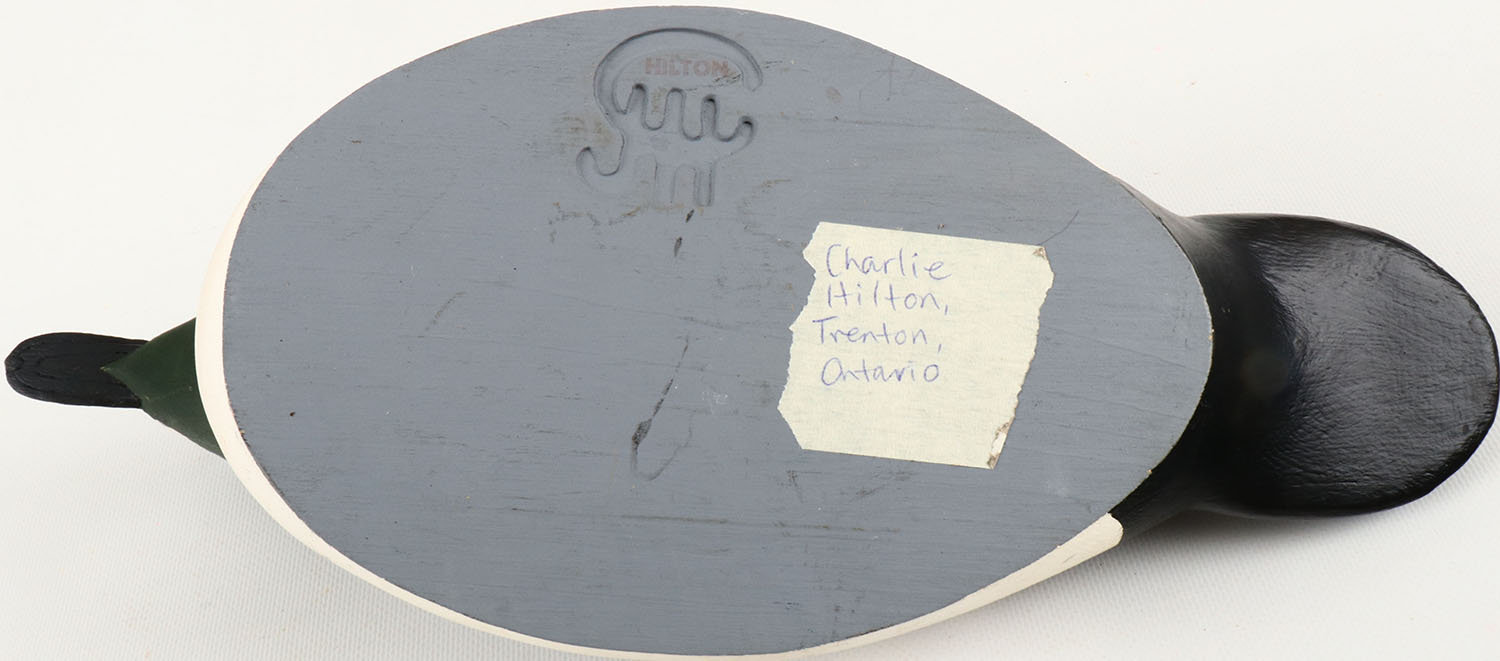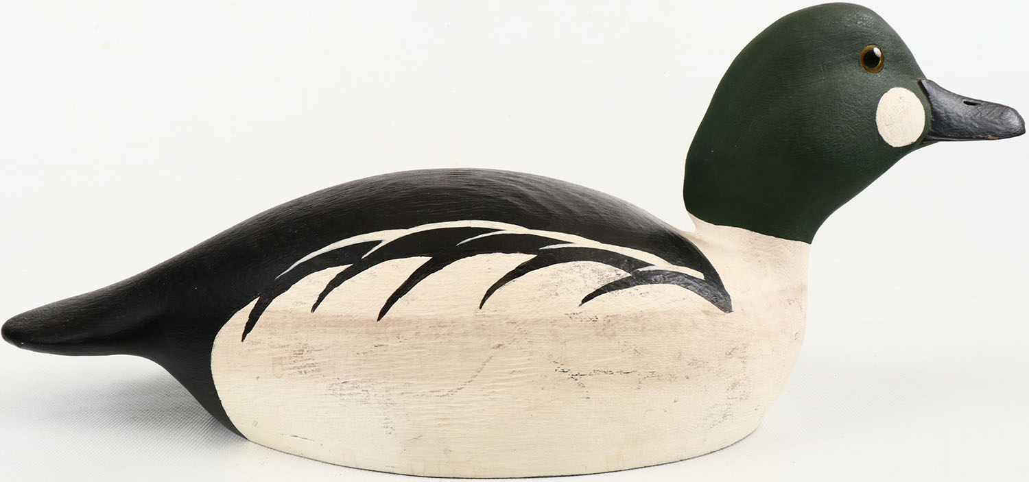 Goldeneye Drake by Charlie Hilton, Trenton, Ontario, glass eyes, structurally excellent, hollow wood, has branded CH on bottom, excellent original paint. Grade: Excellent ++ - Value: 40 to 150