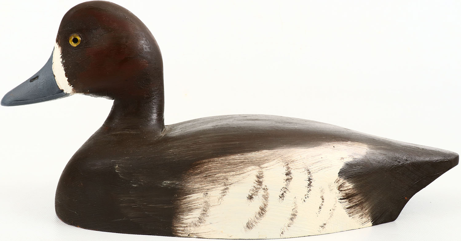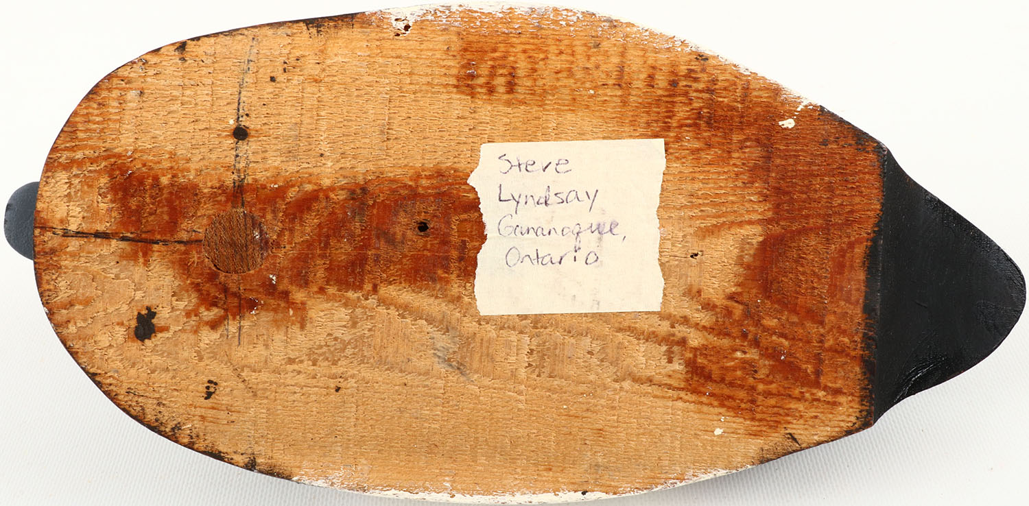 Bluebill Hen by Steve Lyndsay, Gananoque, Ontario, glass eyes, structurally excellent, solid wood, excellent original paint. Grade: Excellent ++ - Value: 40 to 150
