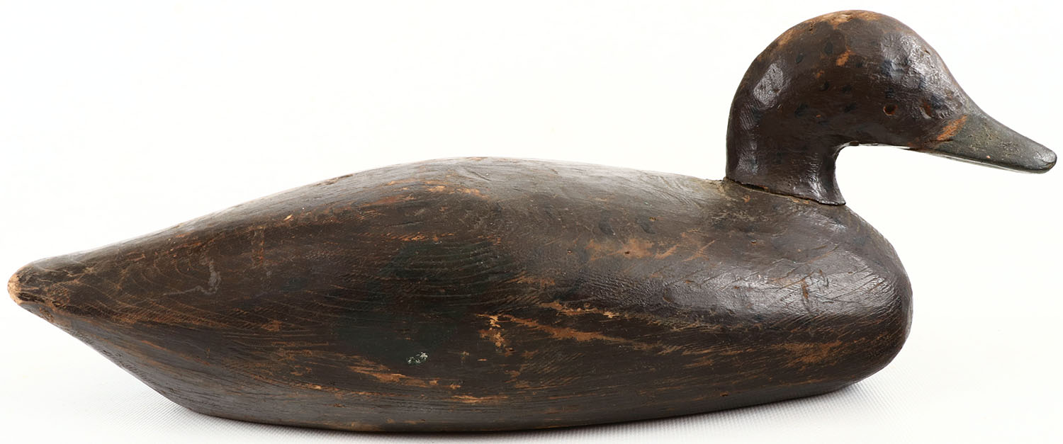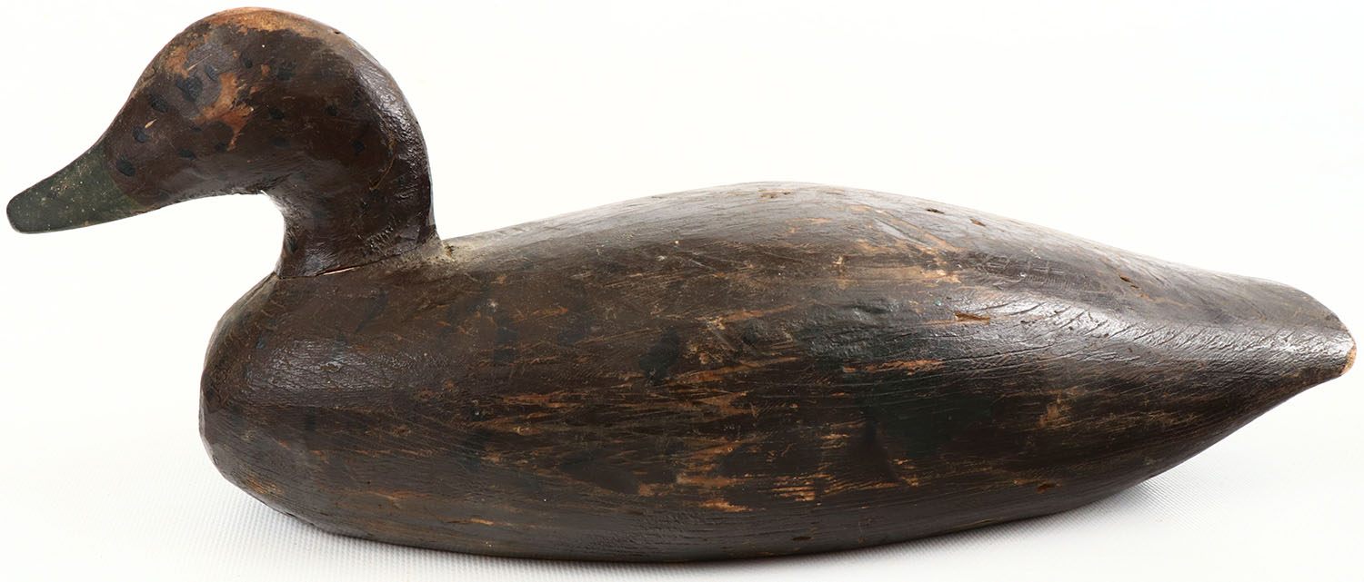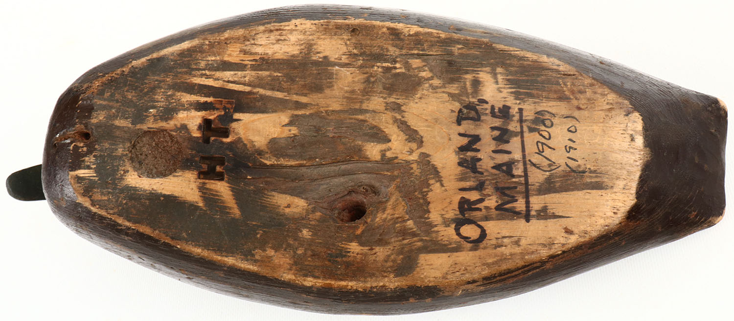 Widgeon Hen, Orland, Maine (1900) (1910), painted eyes, solid wood, original paint, has branded HT on bottom. Grade: Very Good ++ - Value: 40 to 150