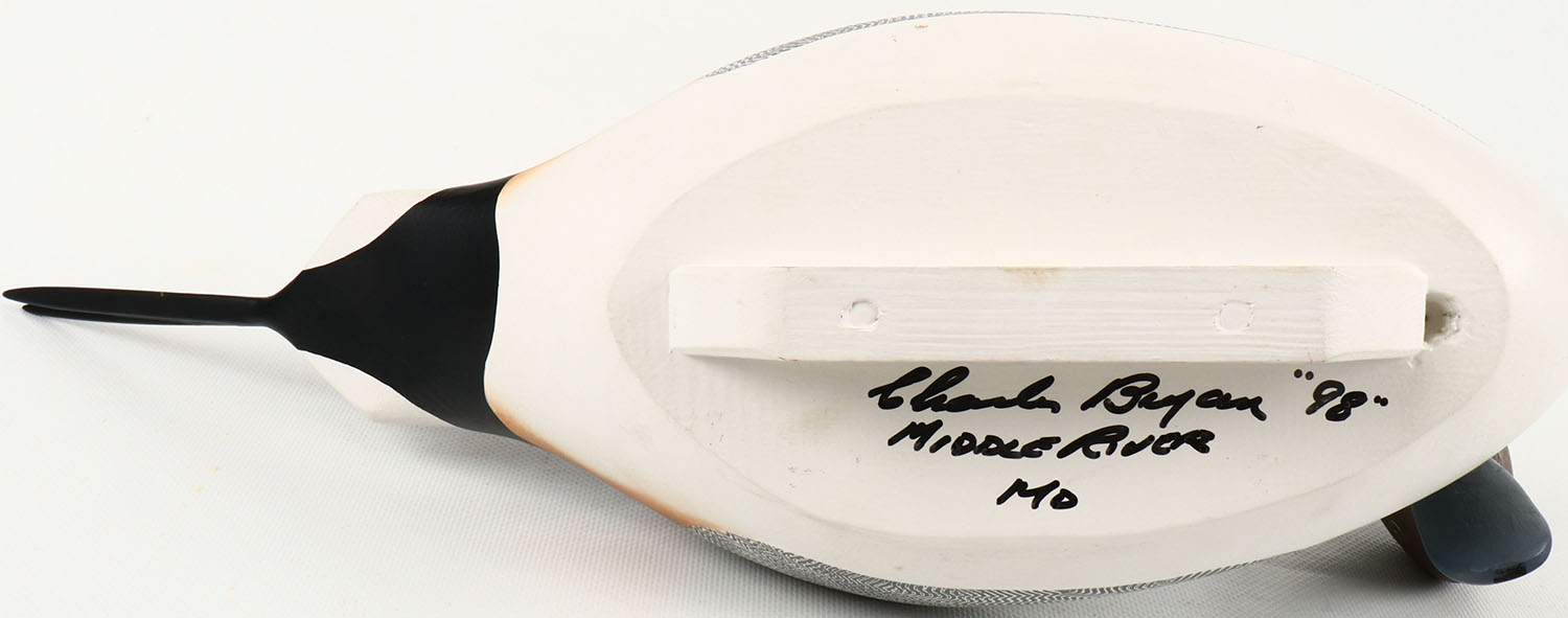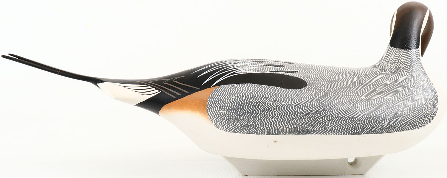 Preening Pintail Drake by Charlie Bryan, Middle River, MD, painted eyes, structurally excellent, solid wood, excellent original comb painting. Grade: Excellent ++ - Value: 40 to 150