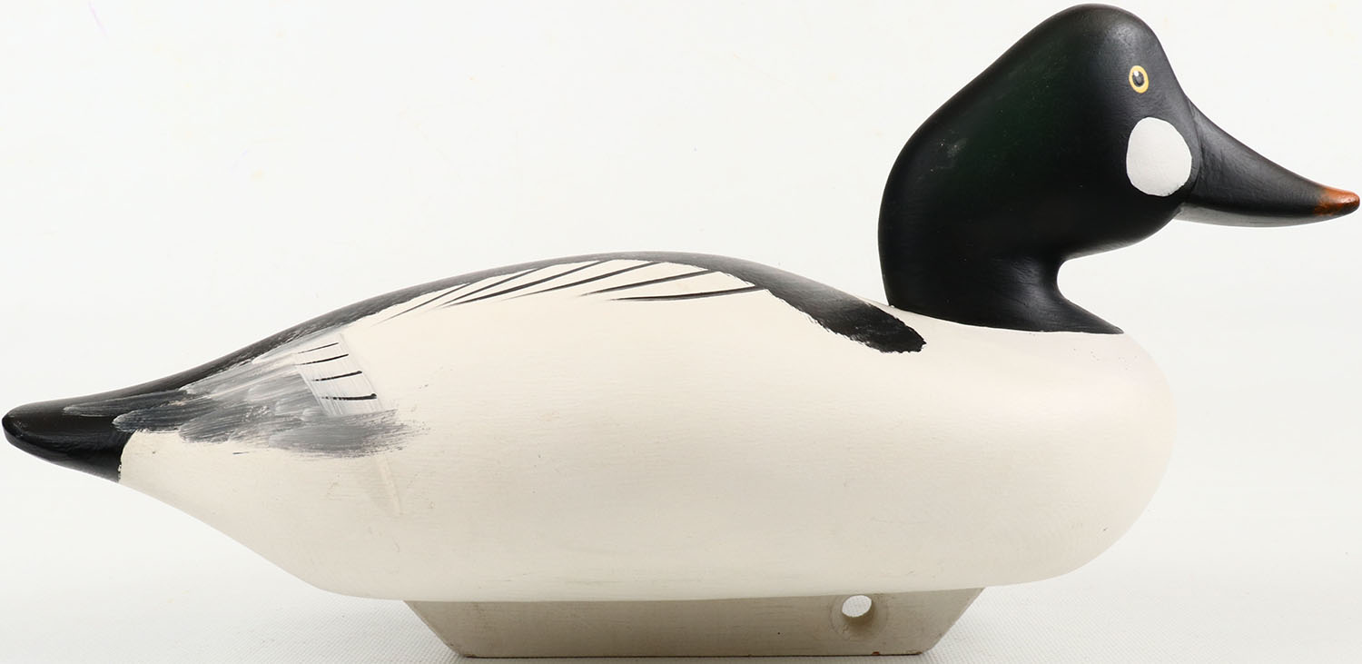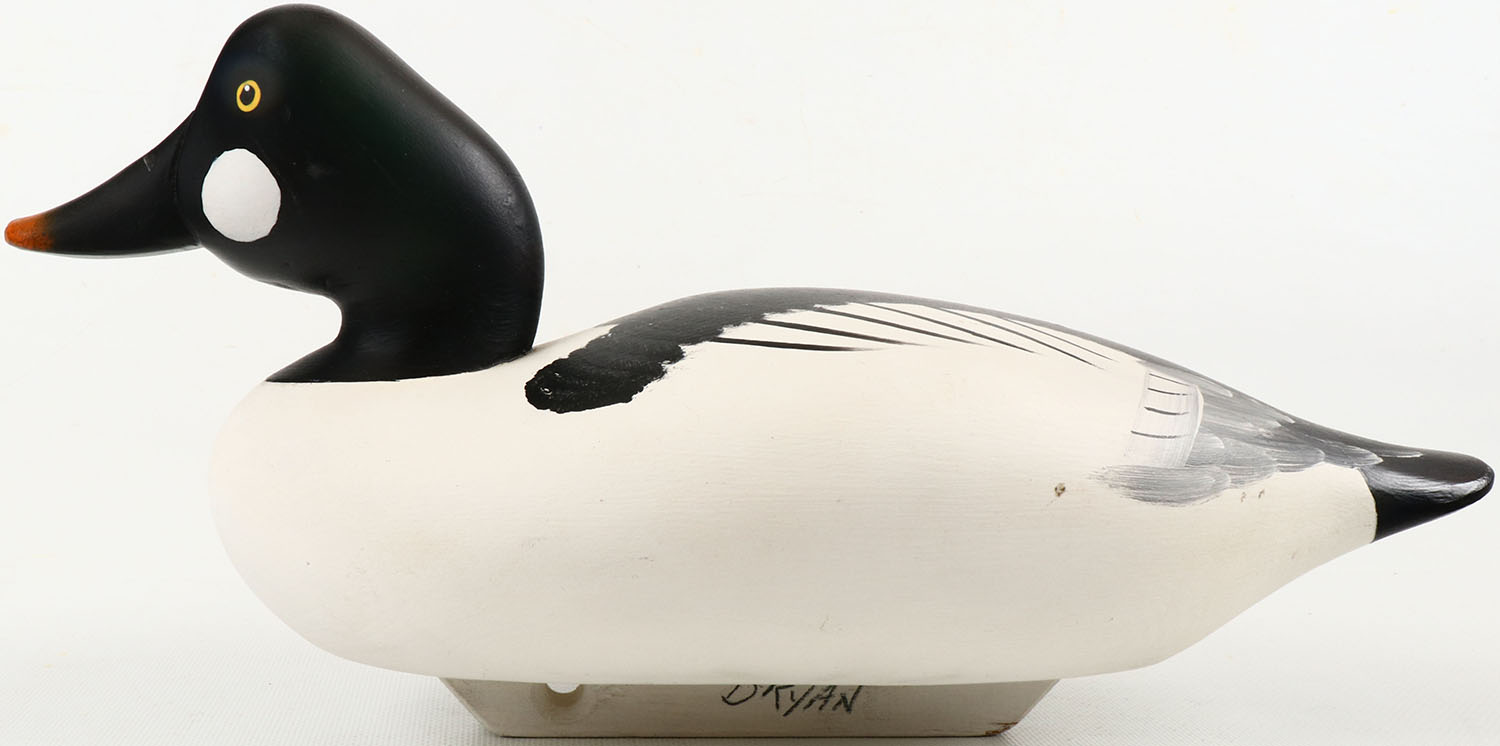 Goldeneye Drake by Charlie Bryan, Middle River, MD, painted eyes, structurally excellent, solid wood, excellent original paint. Grade: MINT - Value: 40 to 150