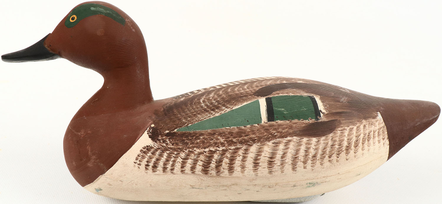 Green Wing Teal Drake by Paul Gibson, Havre de Grace, MD, painted eyes, structurally excellent, solid wood, excellent original paint, bottom is signed. Grade: Excellent ++ - Value: 40 to 150