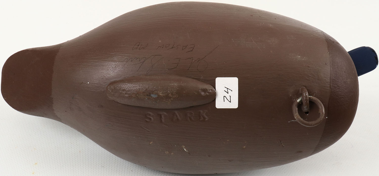 Ring Neck Hen by Jule Stark, Easton, MD, painted eyes, structurally excellent, solid wood, excellent original paint, has branded STARK on bottom, signed on bottom. Grade: Excellent ++ - Value: 40 to 150