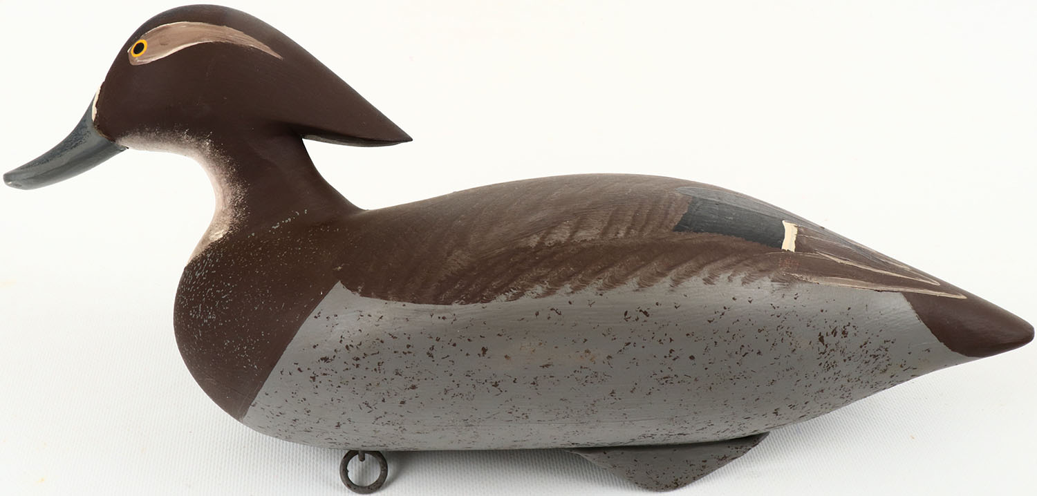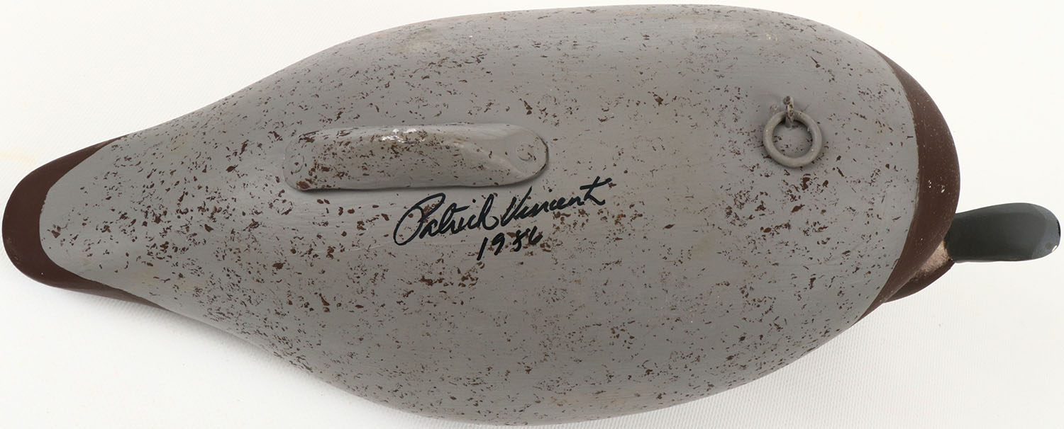 Woodduck Hen by Patrick Vincent, painted eyes, structurally excellent, solid wood, excellent original paint. Grade: Excellent ++ - Value: 40 to 150