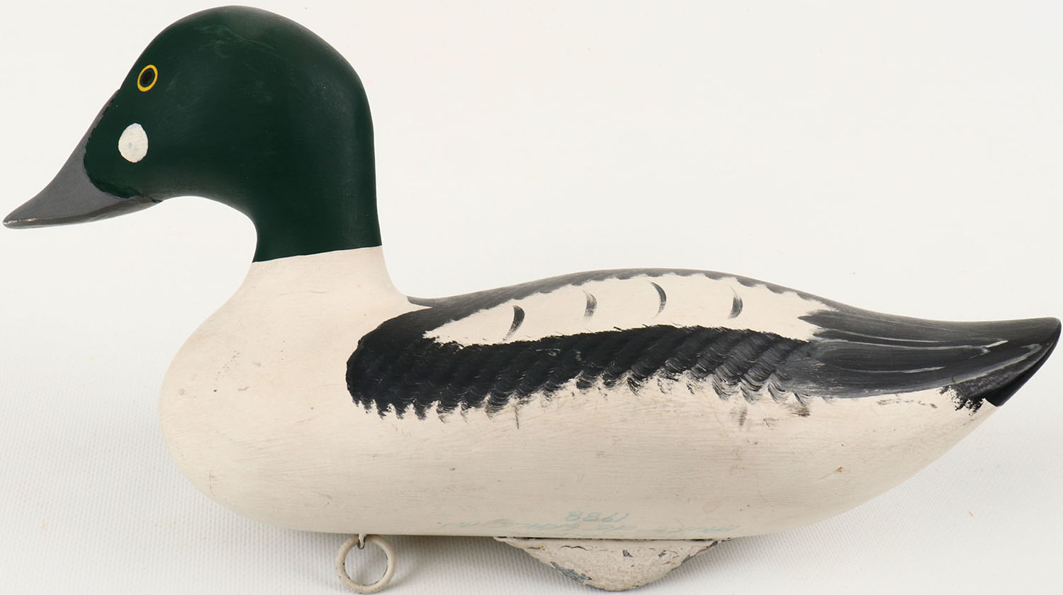 Goldeneye Drake by Dave Walker Havre de Grace, MD, solid wood, painted eyes, mint original paint, structurally excellent, bottom is signed & stamped. Grade: MINT - Value: 40 to 150