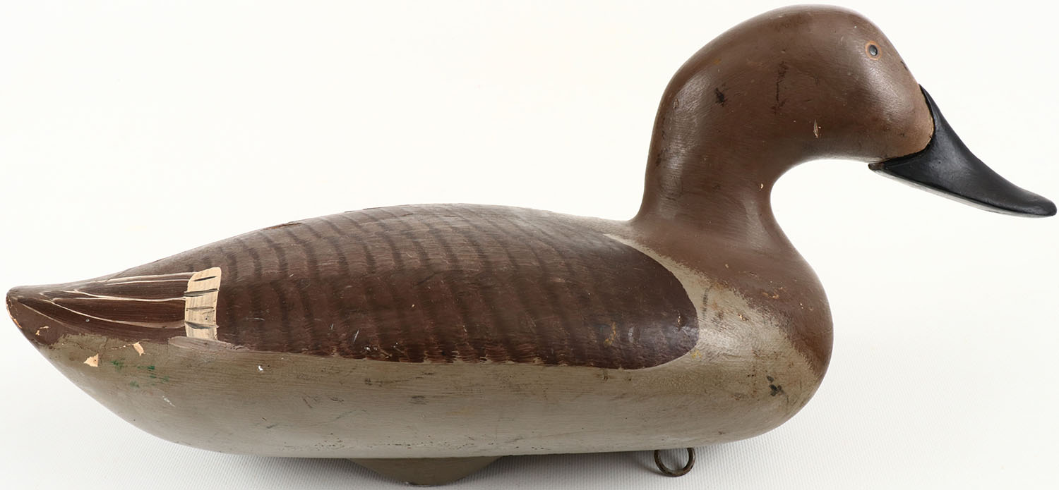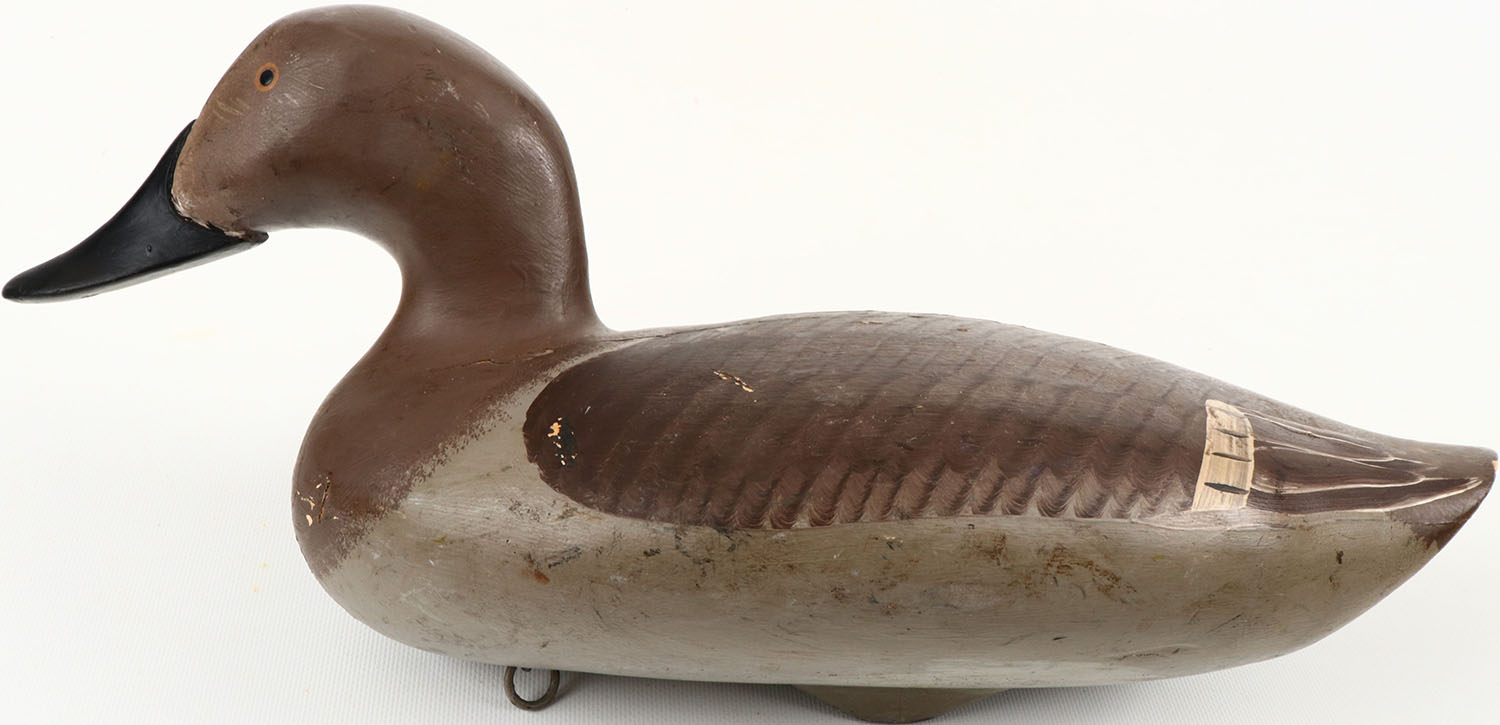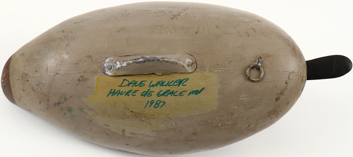 Canvasback Hen by Dave Walker Havre de Grace, MD, solid wood, painted eyes, excellent original paint, structurally excellent, bottom is signed & stamped. Grade: Excellent - Value: 40 to 150