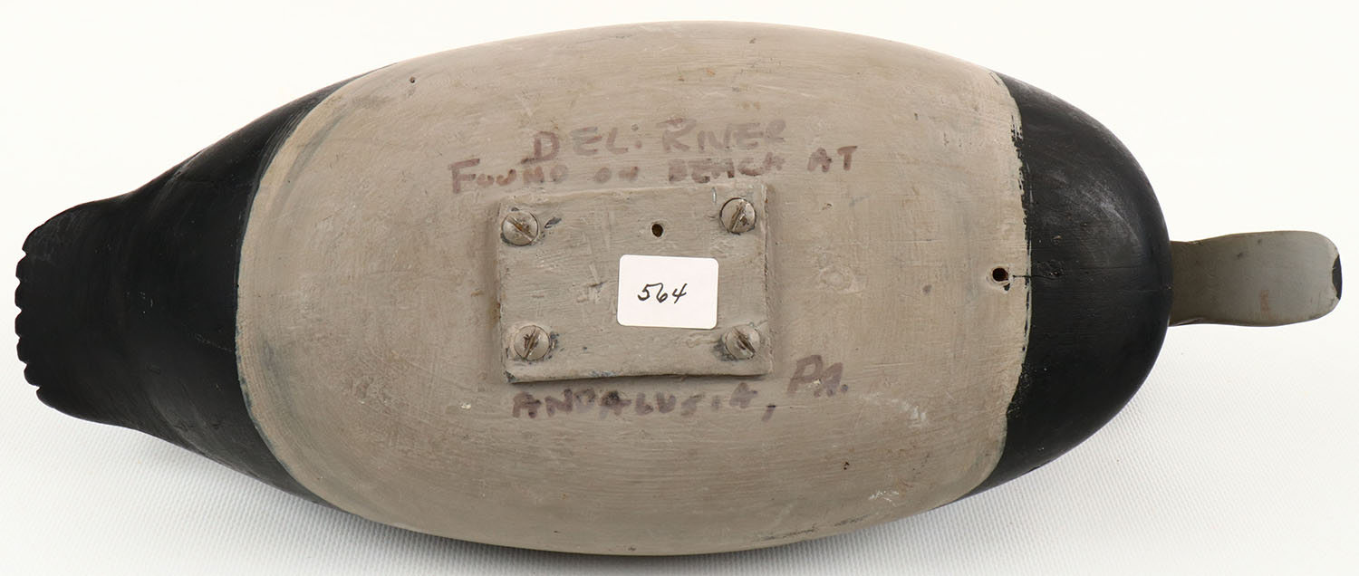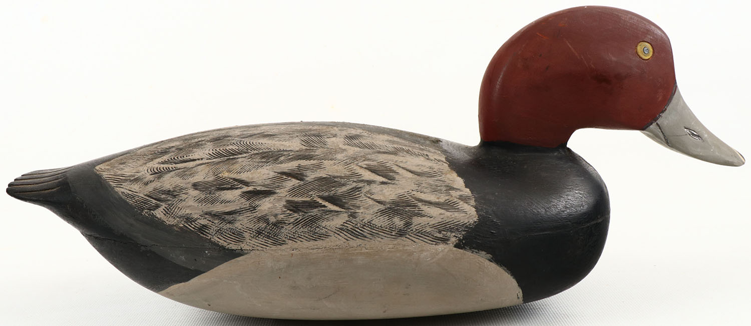 Redhead Drake by unknown maker, Del: River, Andalusia, PA. painted eyes, structurally excellent, hollow wood, excellent original paint, excellent original comb painting. Grade: Excellent ++ - Value: 40 to 150