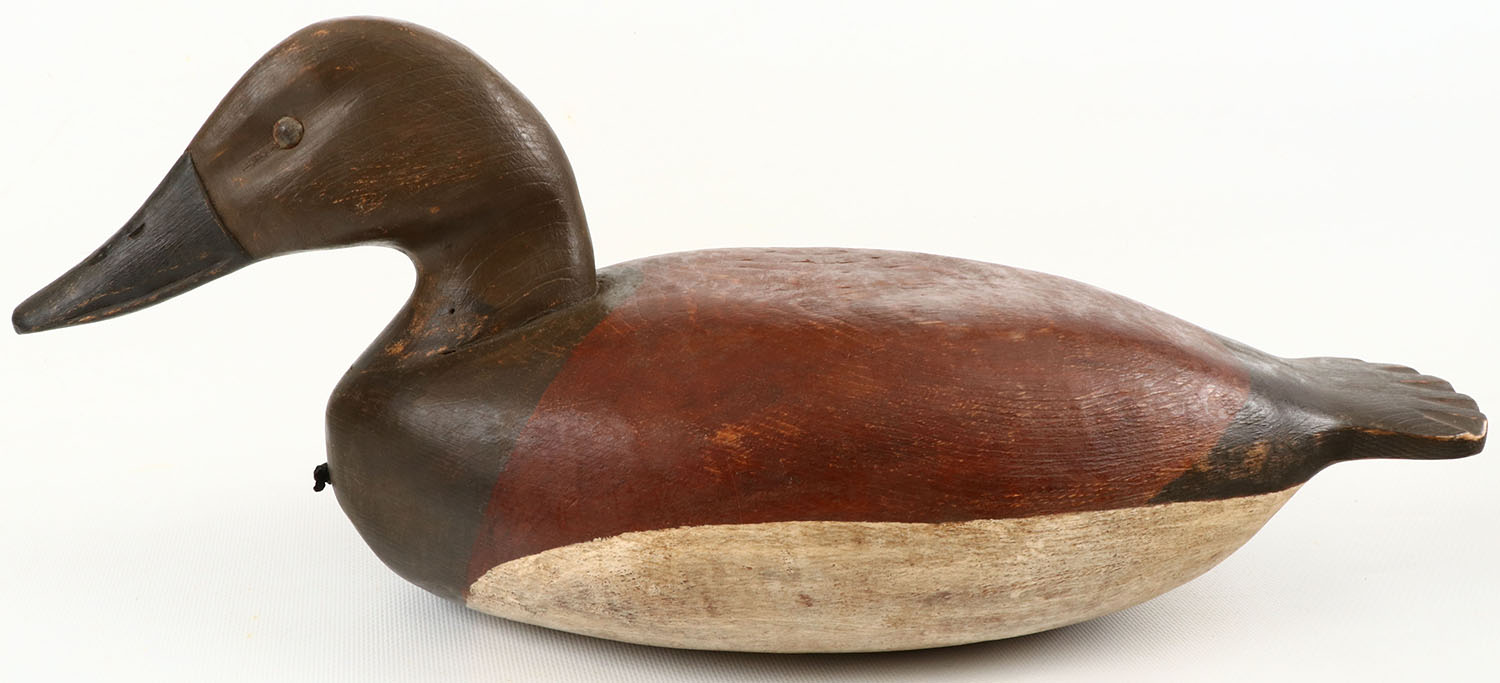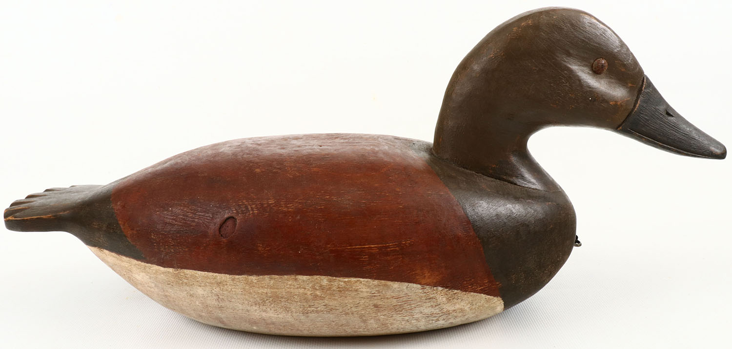 Canvasback Hen by Bob Booth, Chincoteague Island, VA, Jim Hudson Style, tack eyes, structurally excellent, solid wood, excellent original paint. Grade: Excellent - Value: 50 to 150