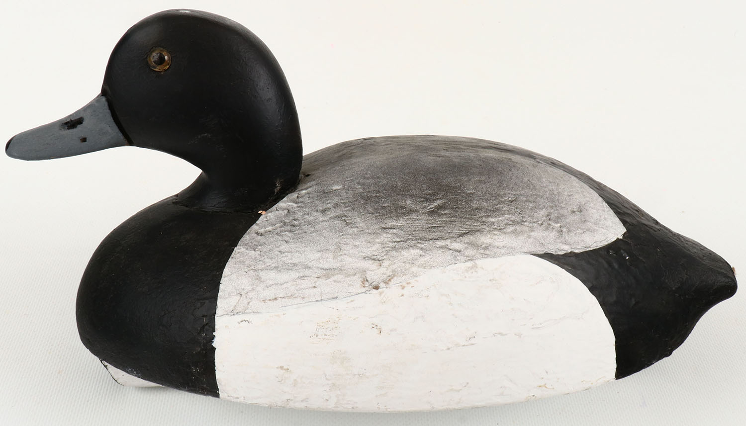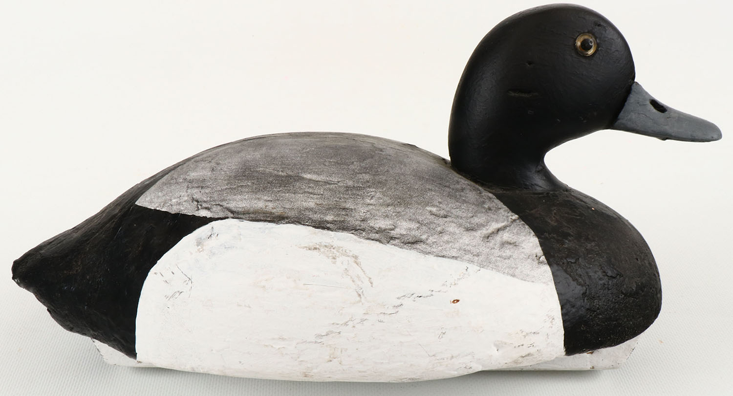 Bluebill Drake by William Goenne, King City, CA, glass eyes, structurally excellent, hollow wood, excellent original paint, branded WGH on bottom. Grade: Excellent ++ - Value: 50 to 150