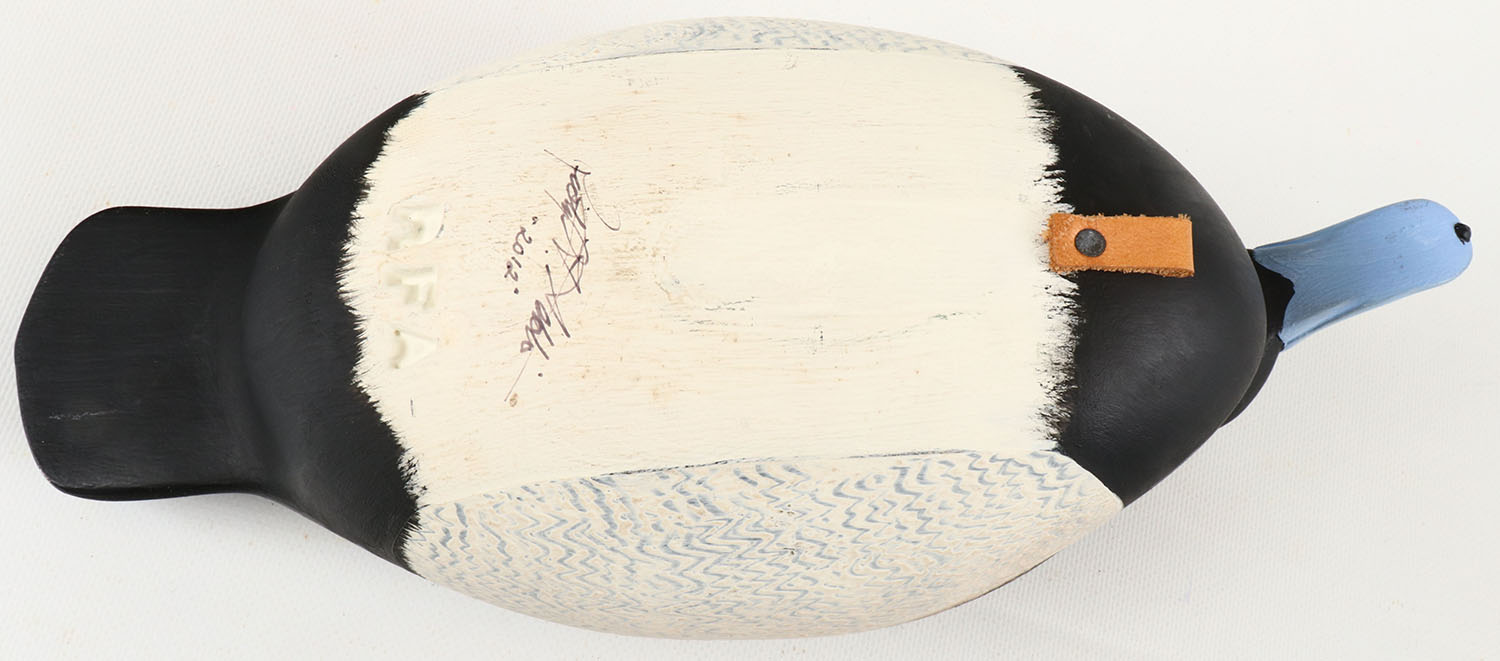 Bluebill Drake by RFA (Robert F A?) (2012), GE, hollow wood, mint original paint, structurally excellent. Grade: Excellent ++ - Value: 40 to 150
